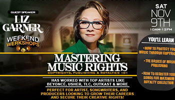 The workshop, led by music executive Liz Garner, focuses on providing practical insights into music rights management, including copyrights, publishing, and royalties.